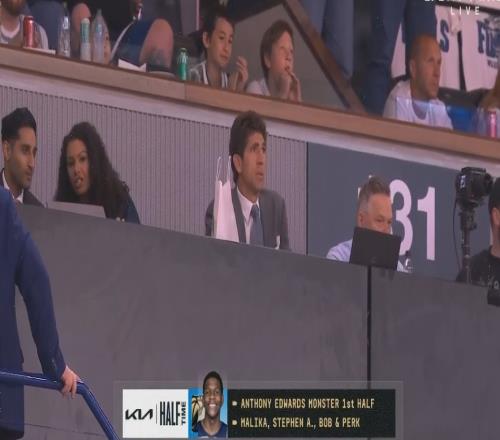 从左到右分别是Shams、Malika Andrew(Shams的女同事)、鲍勃-迈尔斯、迈克-马龙(参与西决报道)